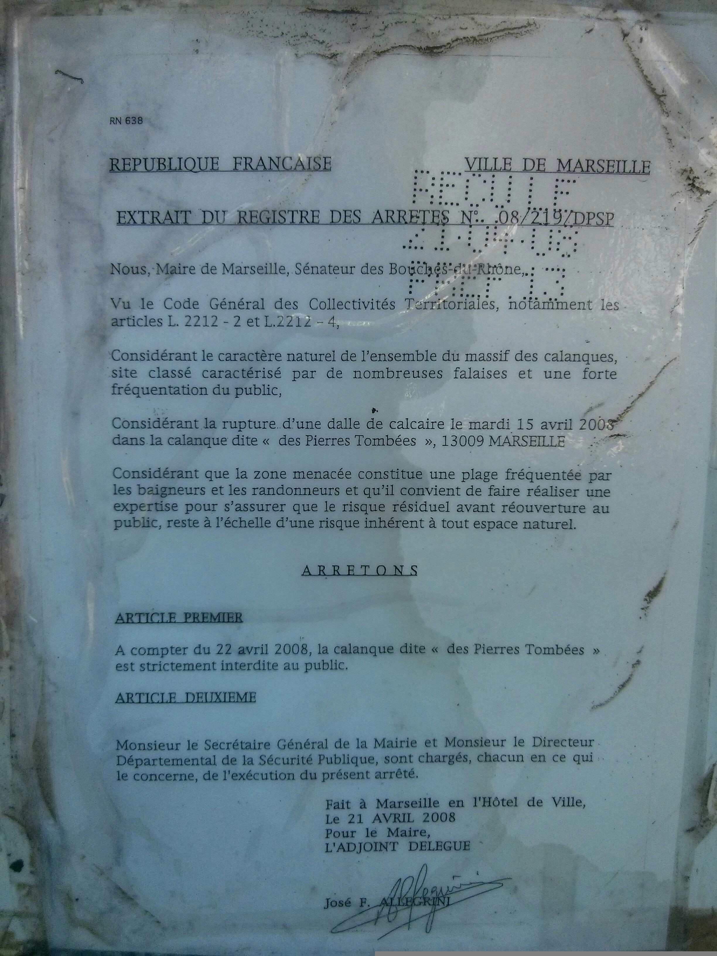 Tous les détails sont sur la carte, cliquez.Une chute de blocs a été constaté mercredi 1er octobre 2025, au pied d’une falaise longeant un sentier conduisant aux calanques de Sugiton et des Pierres Tombées. La Ville de Marseille a procédé à la fermeture de ce sentier jusqu´à nouvel ordre. Les calanques de Sugiton et des Pierres Tombées restent cependant accessibles. Une signalétique est déployée sur le terrain pour informer les visiteurs du cheminement à suivre. Respectez la!